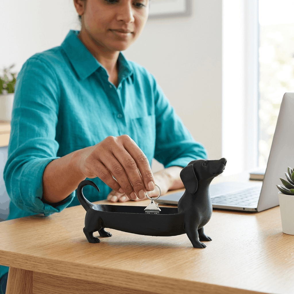 Bring a touch of whimsical sophistication to your space with our 3D-printed Dachshund Organizer. Crafted at 3dprintshop.in using durable, high-quality material, this “sausage dog” tray features a smooth matte finish that complements modern home and office decor.
