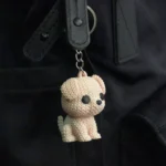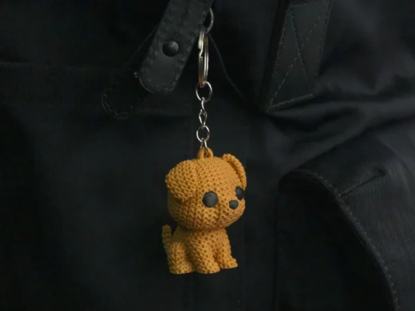 This knitted puppy keychain is designed to melt hearts instantly.