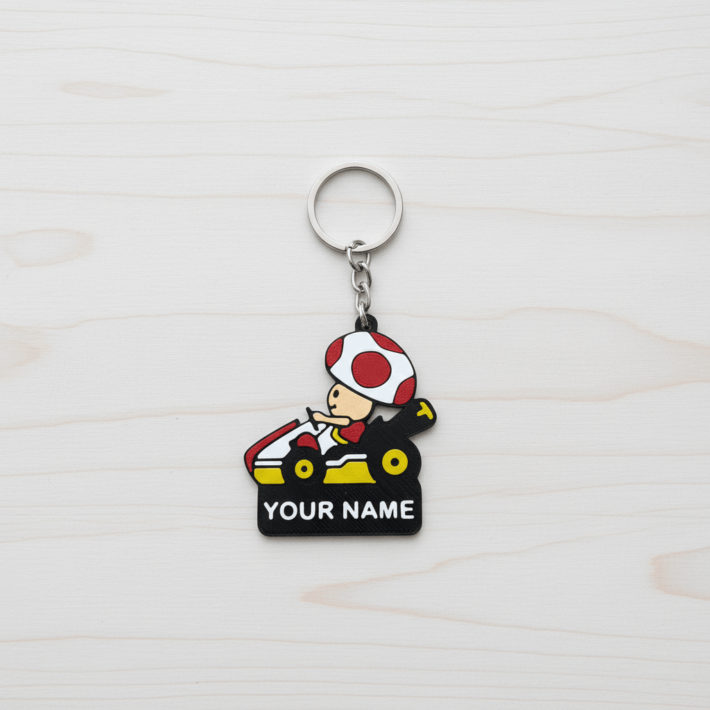 Looking to Toad keychain buy online for your keys, backpack, or scooter key set? This customizable Toad-inspired keychain is light, fun, and built for daily use. With its iconic mushroom cap and cheerful character look, it’s a perfect pick for Mario Kart fans and collectors. Printed on premium Bambu Lab machines for crisp detail, it’s a small accessory that adds big personality.