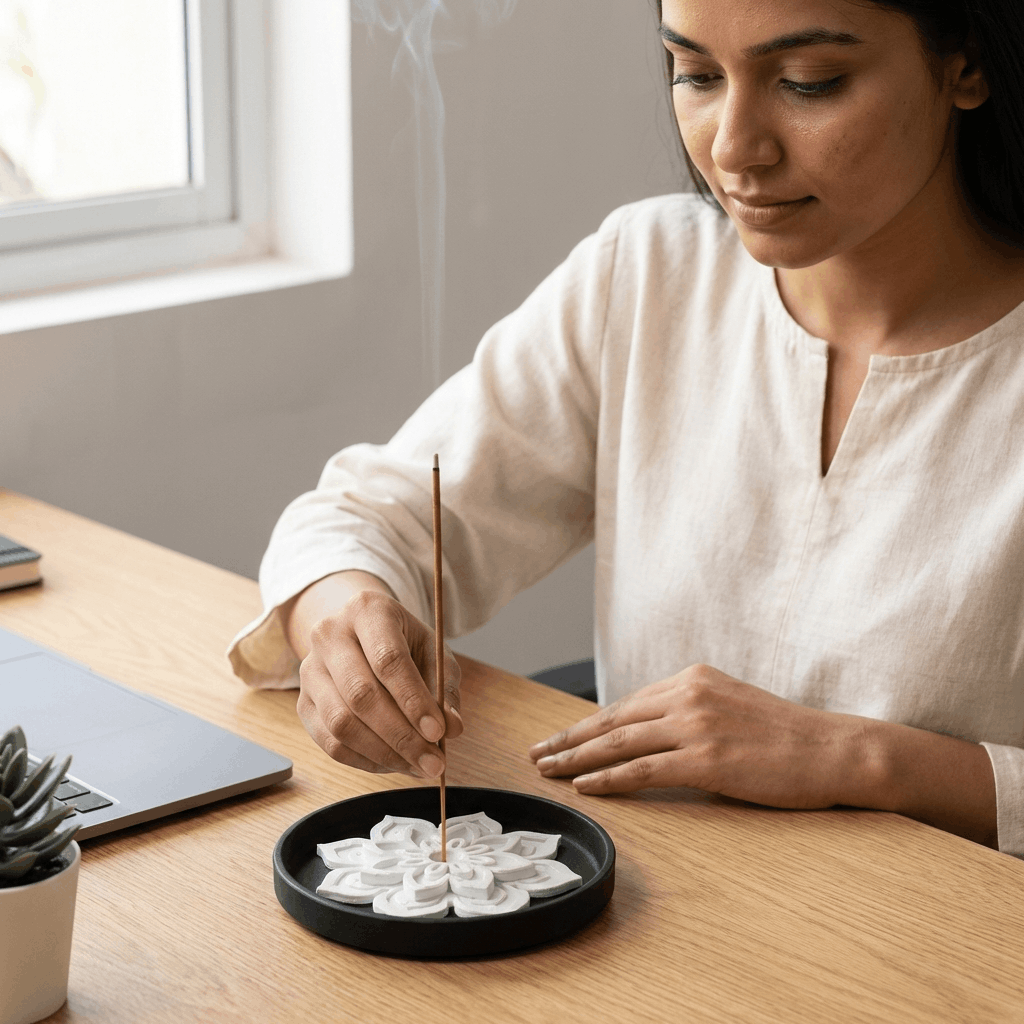 Ideal for your pooja space, yoga/meditation setup, bedside relaxation corner, or work desk where you want a calm vibe. This lotus incense holder pairs beautifully with minimal home decor, spiritual corners, and mindful gifting. A thoughtful pick for housewarming, Diwali decor, or everyday wellness rituals—delivered across India with safe packaging.
