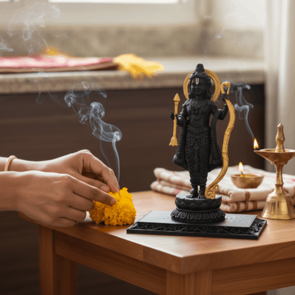 Ram Lalla Idol is a sacred representation of Lord Ram in his divine form, symbolising righteousness, devotion, courage, and dharma. Revered by millions, Ram Lalla holds a special place in Hindu worship and is especially auspicious for home temples and daily pooja.