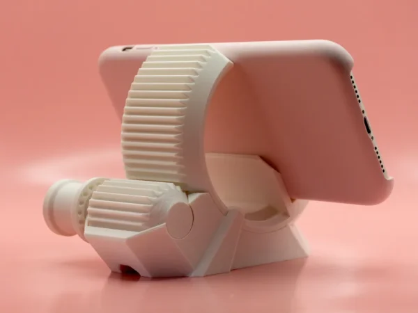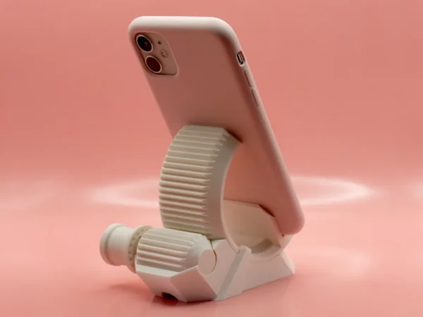 Gear Phone Stand Lock is a modern and sturdy mobile phone stand designed with a locking gear mechanism that keeps your phone firmly in place at the desired angle. Its curved ergonomic design provides stable support, making it ideal for desks, tables, workstations, and bedside use.